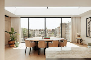 Extra viel Tageslicht in der neuen Fassade des Penthouses und ein komfortabler Zugang zum wunderschönen Dachgarten im Museumsviertel, im Herzen Amsterdams. Dies verleiht der Luxuswohnung in Amsterdam zusätzlichen Wert und fügt Quadratmeter hinzu. RZ&ND übernahm diesen Razendbouw